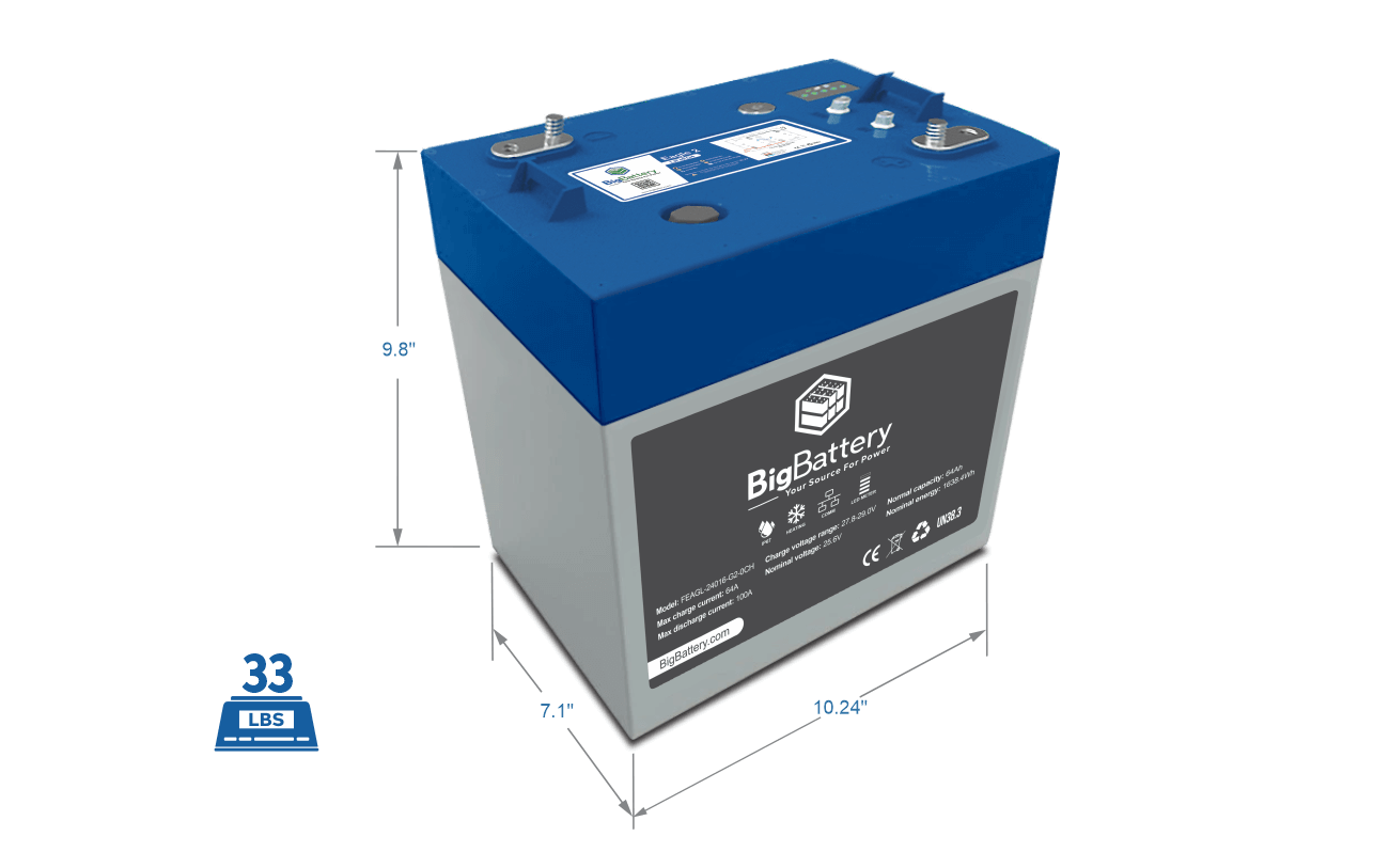 Transform your scissor lifts with the Eagle 2 BigBattery 24 V Scissor Lift Kit — the cutting-edge LiFePO₄ upgrade built to outlast and outperform outdated lead-acid systems. Two rugged Eagle 2 batteries deliver lightning-fast charging, nearly zero maintenance, and relentlessly consistent power. Paired with a precision-engineered counterweight, this plug-and-play kit matches the original weight of four lead-acid batteries—so your lift stays safe, balanced, and stable without a modification. ECO-safe, ultra-efficient, and UL/CE-certified, it’s the smart replacement that keeps your job sites moving smoothly and your maintenance costs low.